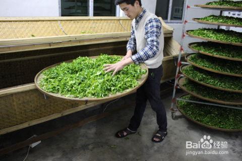 2. 萎凋:采摘后的茶叶进行萎凋,使茶叶失去一部分水分。
